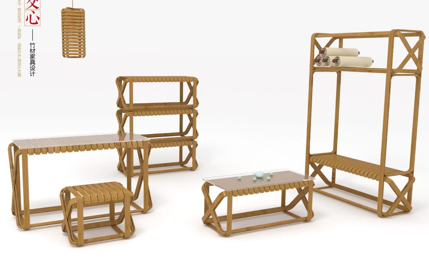 家具有时候就像我们交心的朋友,生活中常常与之接触。而它们所传达的功能、形式、语言等往往体现着我们的生活态度。 交心,顾名思义就是产品的中心结构采用原竹材交叉状成型。增加视觉美感的同时,也是一种很好的受力方式。仔细一品更有丝书法米字格的韵味。 结构简单而易于生产是这套家具的特点,主体采用原竹材料成型,桌子和茶几结合钢化玻璃,呈现出一种温和的力量感。