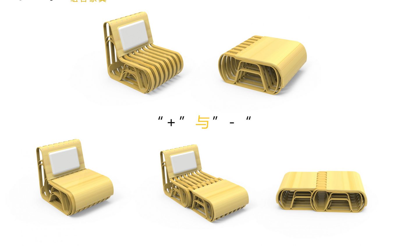这款家具以竹集成材为主材,主要采用加减原理,简单实用,有多种组合方式,可以根据主人的需要自由组合,符合人性化设计。且在功能形式上更符合现代人的生活品位和需求。
