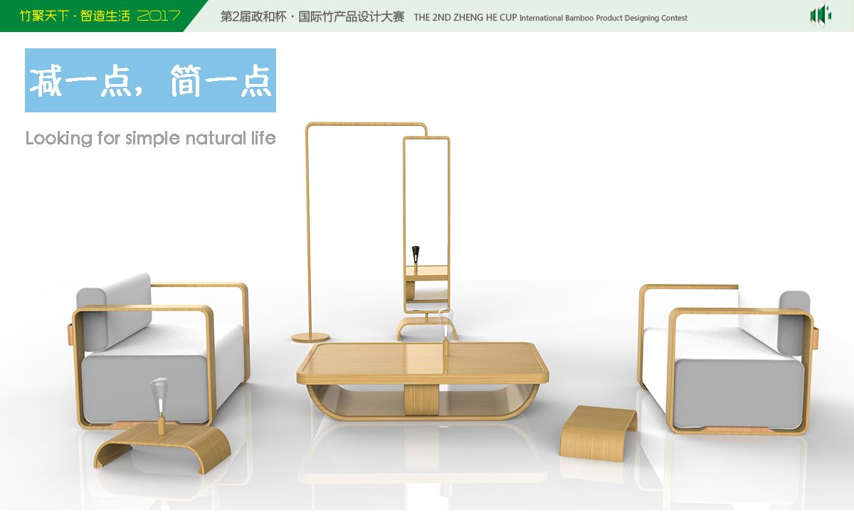 减一点,简一点希望能减少家具产品中的一点装饰,一点棱角,一点复杂,一点多余,希望追求生活的多一点的简单,一点安静,一点和谐,一点自然。利用竹子易造型高环保的特性,与玻璃和金属的结合,更体现了材料之美。